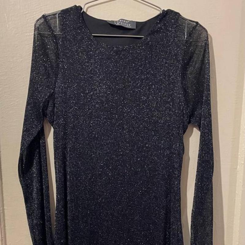 Бренд: Primark, цвет - черный, модельный размер - M (UK 12–14 / EUR 40–42 / USA 8–10), изготовлен в Турции (Turkiye) Стиль: вечерний / вечерний выход, party‐dress. Состав: комбинированные синтетические волокна с люрексом для блеска. Благодаря длинным рукавам и эффектной сетке, подойдет и для холодных вечеров с жакетом или шубкой. Плечи 39 Длина рукава 62 полуобъем груди 44 талия 40 стегна 50 Длина платья 127