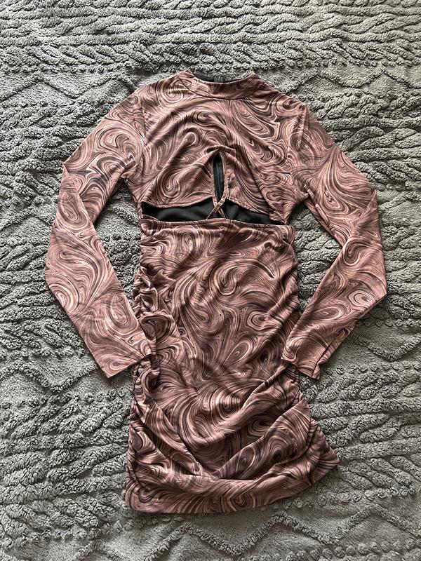 Ефектна сукня міні, по боках зі збірками, ззаді замочок. Має виріз на грудях, ідеальний стан