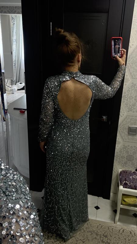 Красива сукня З паєтками І красивою спинкою Не знаю як внизу , стегна до 110 точно А от верх навпаки на пишні груди Розмір м- хл