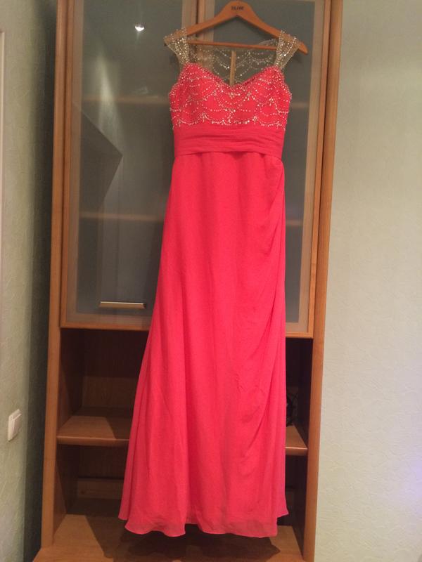 Шикарное вечернее платье, ткань шифон, есть подкладка, очень красивая вышивка ( стразы, паетки,жемчуг), сетка под цвет тела, создаётся впечатление, что камешки рассыпаны по телу, лиф поддержующий грудь. Длина 149 см,ширина по груди 44 см, ширина по талии 36 см. Платье супер красивое!!!