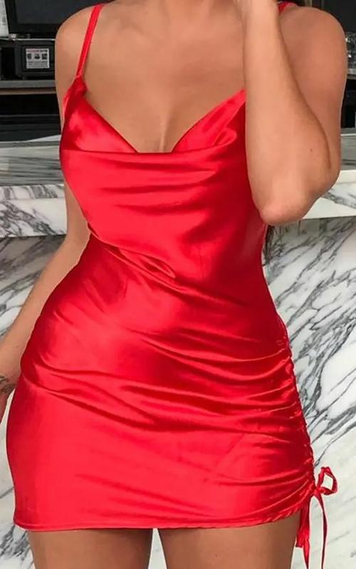 Напів об’єм грудей 47 см. Напів талія 42 см. Напів бедра 53 см. Сукня атласна,довжина регулюється, по спинці блискавка
