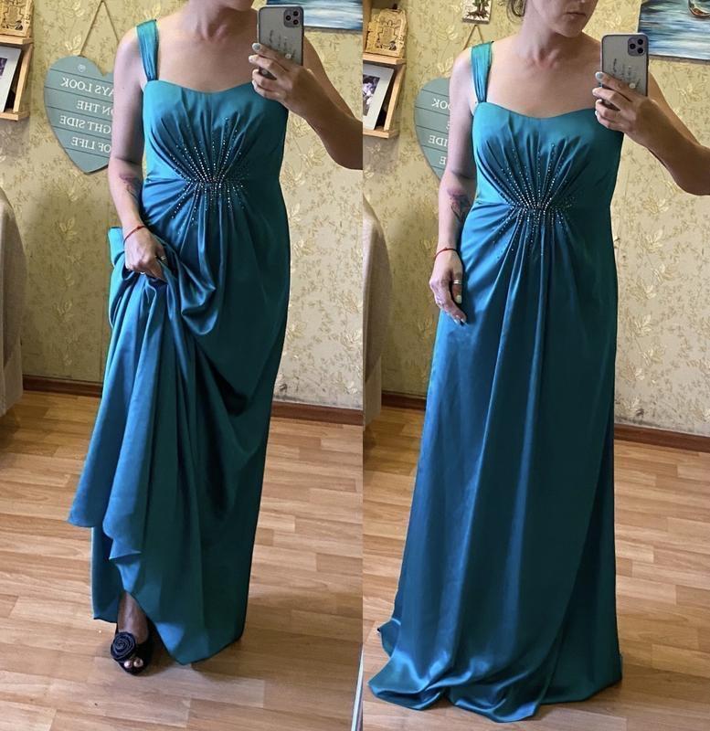 Розмір 38: між пахв 42, напівобхват там де середина каменів 39 , пос по підкладці 55, довжина по спинці без бретелей 133. Нюанс : так як висіло деякий час на манікені у вітрині після відпарювача є розводи, підуть після прання плаття цілком , останне фото