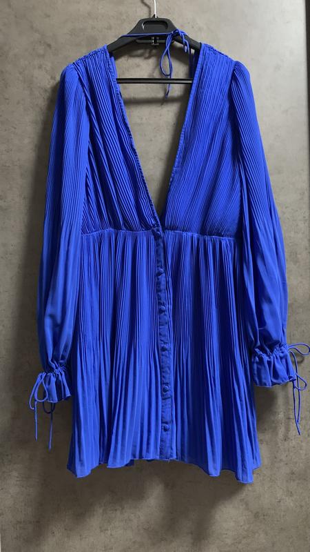 Сукня плісе, кольору електрик АSOS, Розмір S/M Сукня на підкладці. Широкий довгий рукав. Низ- спідниця на ґудзиках По талії 38 см Довжина 86 см