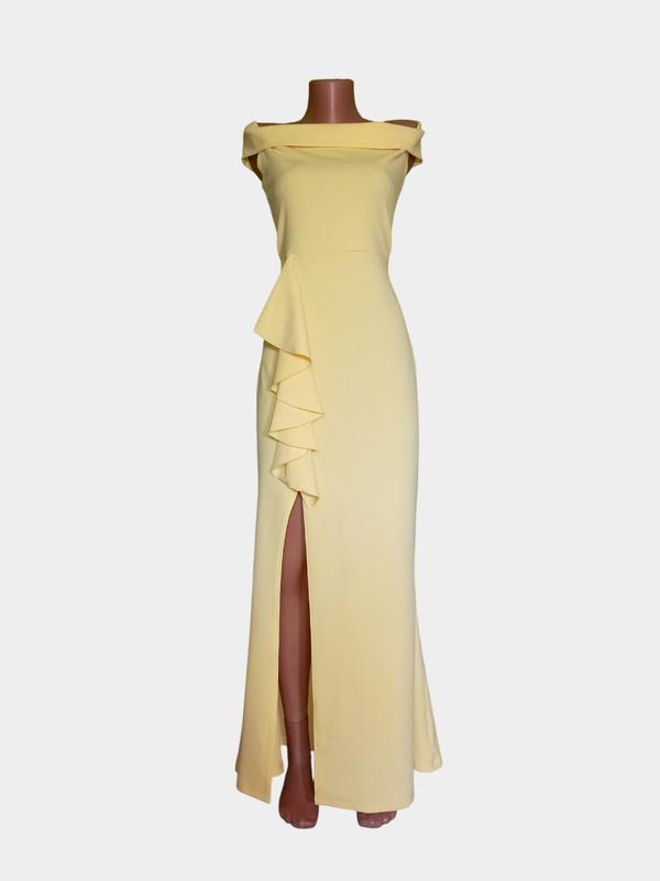 Элегантное облегающее платье макси. Открытые плечи, юбка рыбка с разрезом на ноге. Застёгивается сзади на длинную скрытую молнию. Эластичное, в спокойном состоянии: Полуобъём груди 47-62 Полуобъём талии 40-52 Полуобъём бедер 47-62 Длина 132 Разрез 63