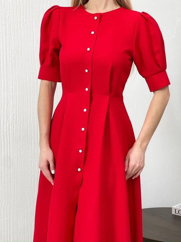 Женское летнее изысканное вечернее платье миди с коротким рукавом на пуговицах красное