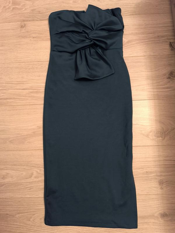 Без бретелей, на груди большой красивый бант. Длина 91, ПОГ 34, ПОТ 33, ПОС 39, немного тянется