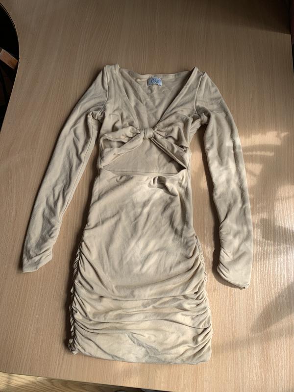 Бежева сукня, розміру xs, вже на більш прохолодну погоду
