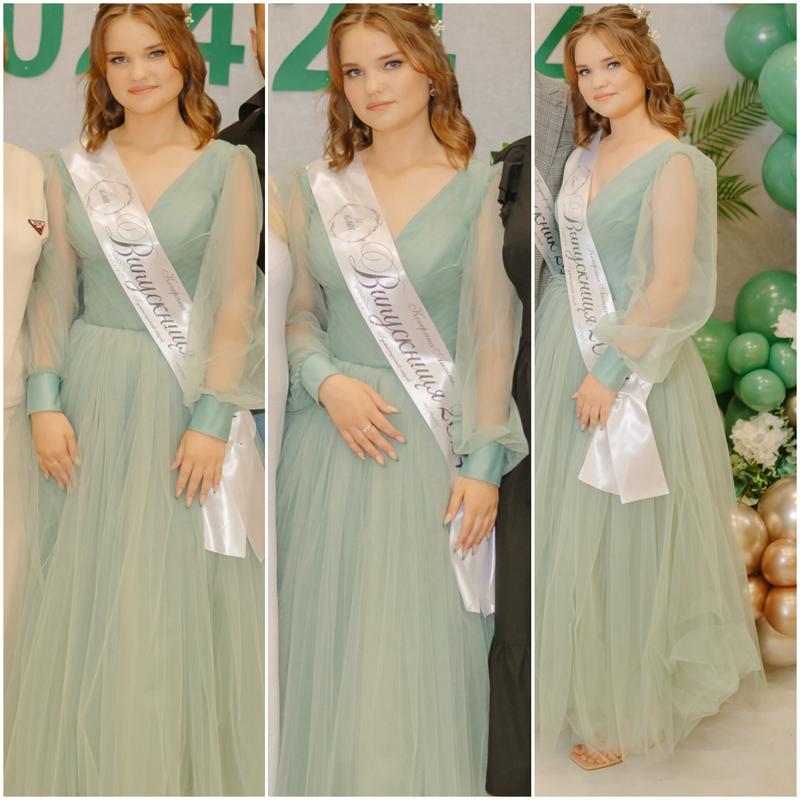 выпускное, вечернее платье с корсетом. Стан идеален. К платью есть еще цветочки на плече, и пояс. Размер S/M