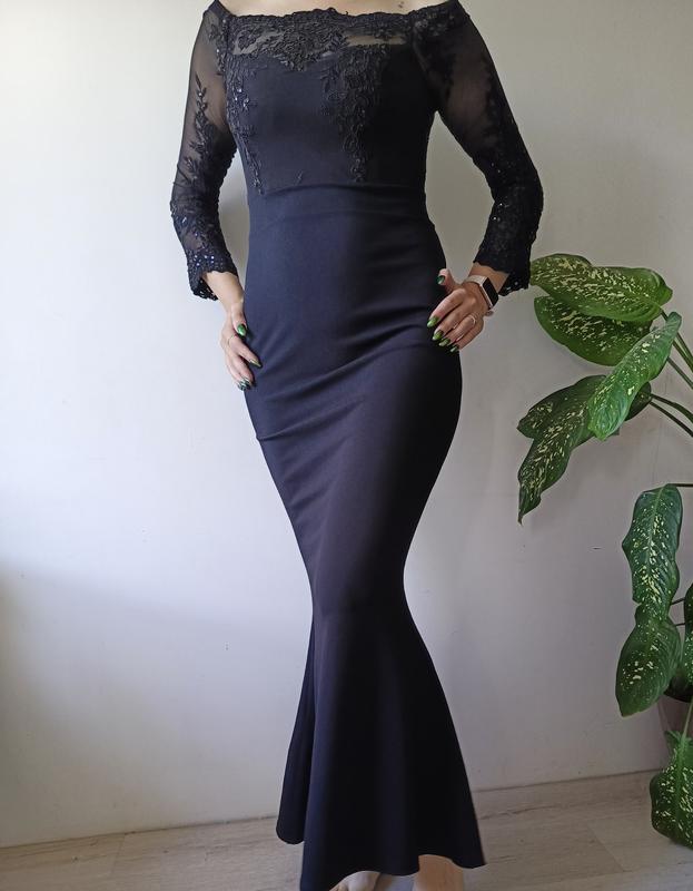 Новое чёрное торжество красивое вечернее платье по фигуре длинное с открытыми плечами, кру...