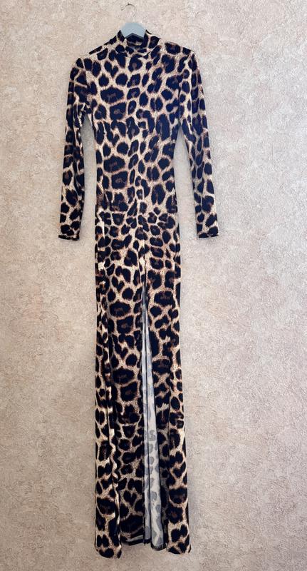 Сукня вечірня леопард Розмір : S 42-44 Спереді має розріз на нозі Спинка відкрита Стан: ідеальний Довжина: 160 см ( можна підрізати)