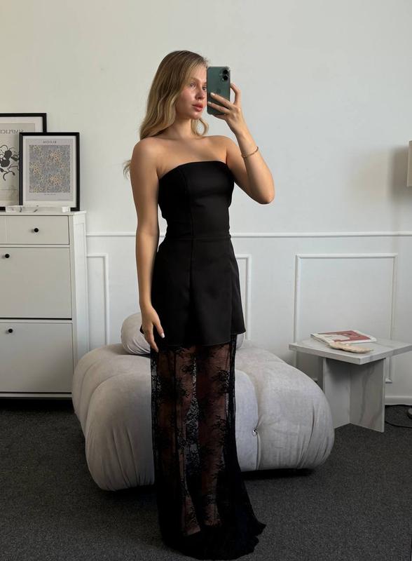 Вечірня сукня з мережевом, сукня та сідниця з мереживом , 2 в 1, чорна/біла