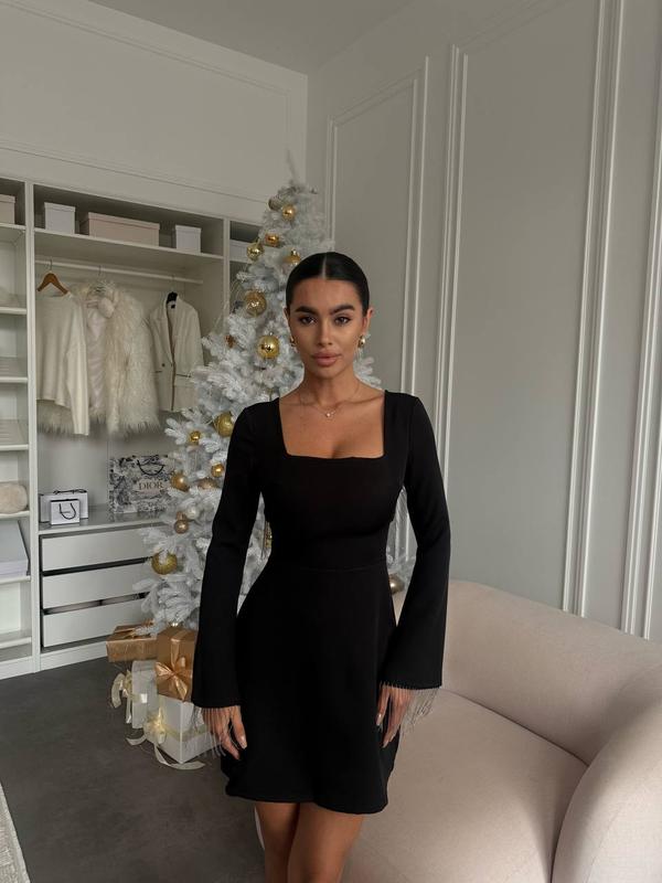 Хит продаж 🔥 Модель 5601 Женское платье Размерный ряд S,M,L,XL Тканина костюмна Очень красивое и нарядное платье, с стильными в этом сезоне подвесками по рукавам и спинке Застегивается верх на пуговицы, по спинке молния Супер качество