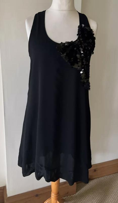 Коктейльное платье, украшенное бантом с пайетками, длина 90 см, пог 52 см