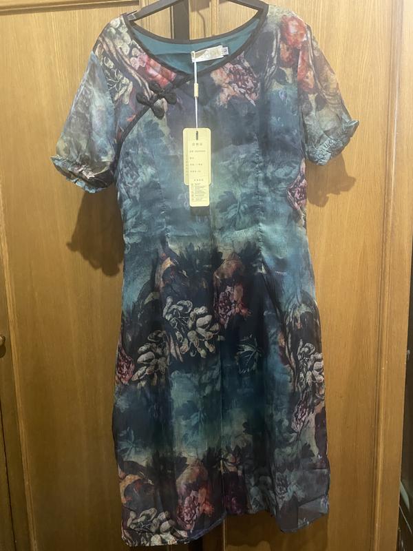 На подкладке новое красивое платье оригинальным принтом