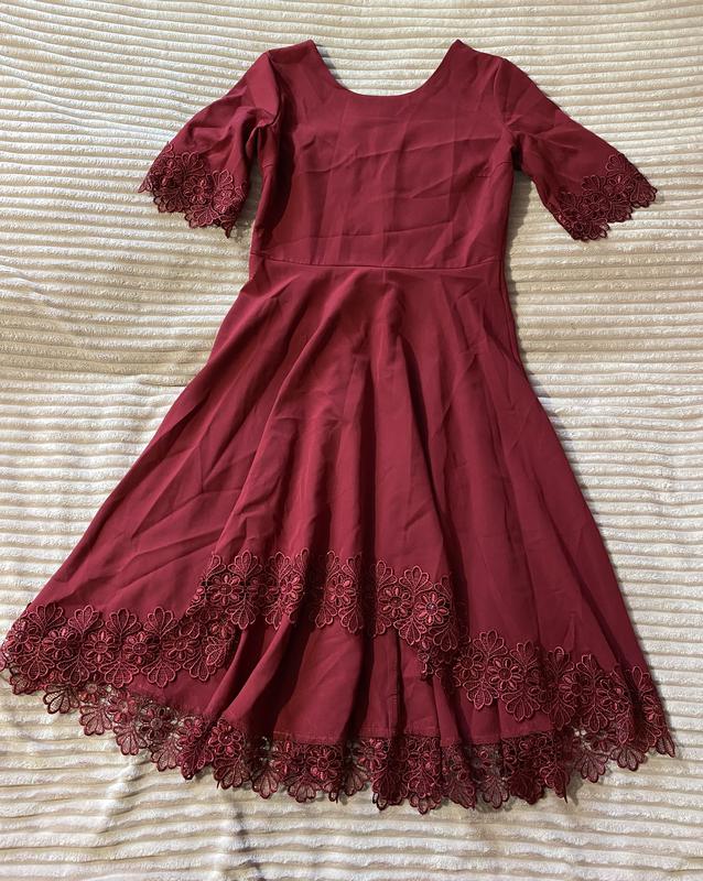 Чудова сукня 42 розміру в бордовому кольорі з поясом Ог 48 Об 57 От 39 Довжина 114, перша частина коротша
