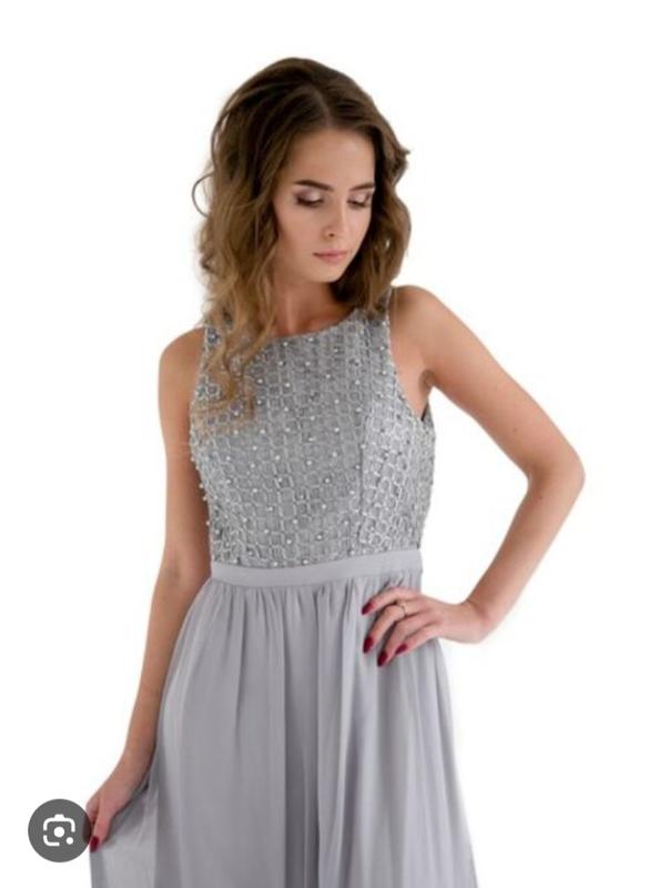 длинное нарядное платьеLittleMisterss,светло серого цвета шифон,лиф расшит бисеры, распорка спереди по ноге, длинна платья 150,талия до 80,е мзада резинка,груды 90