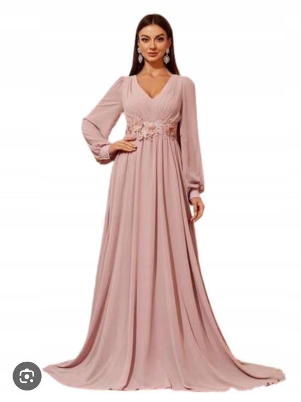 долгое нарчедное вечернее платье Faeresity, пудрового цвета, сV образным вырезом,та с аппликацией на поясе,такина шифон,длина платья 160см,грудь 90,талия 70