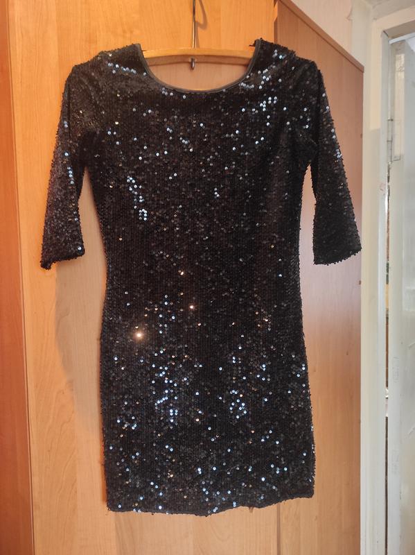 Черное платье с вышивкой пайетками. Нарядное с о крытой спиной. Длина 83. ПОГ 38. ПОТ 37, сбоку змейка, спина открыта. Качество супер. И состояние идеальное.