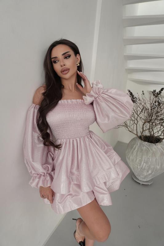 Праздничное люрексовое платье с пышной юбкой, вечернее блестящее платье мини с объемными р...