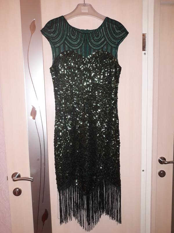 Платье в зеленых пайетках с бахромой