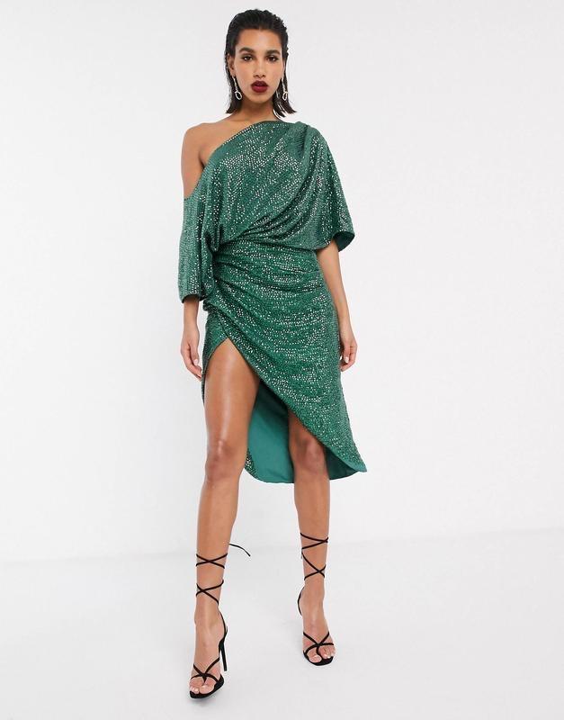Асиметричне зелене плаття міді з пайєтками asos edition • вечірнє святкове