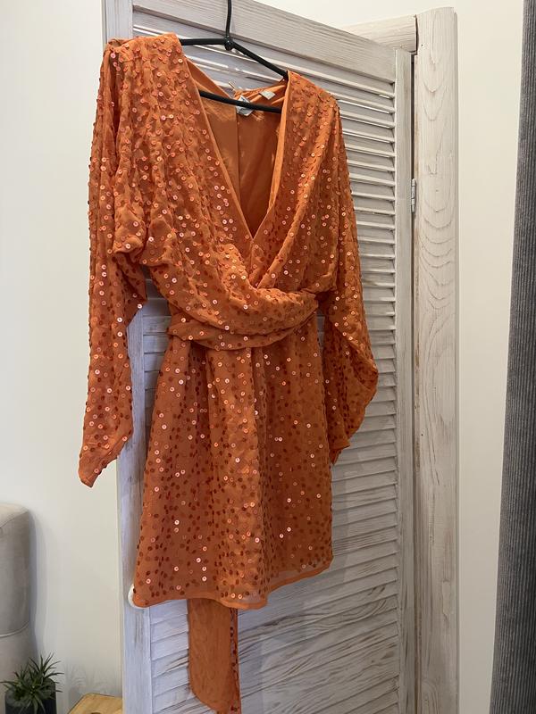 Оранжевое платье пайетки оранжевое с длинным рукавом