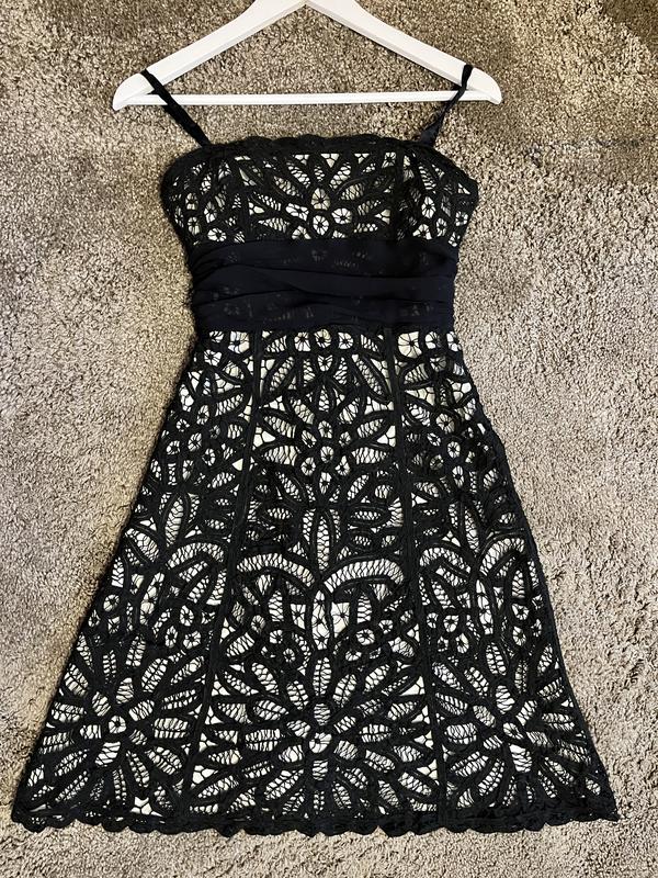 Чудова брендова сукня, 100% котон, надзвичайно красиве мереживо, бретелі регулюються, збоку потайний замок, пояс- шифон, ідеально лягає по фігурі, розмір S Довжина- 77см ( по боковому шву) ПОГ- 40см ПОТ- 33см ПОБ- 50см Дивіться ще інші мої оголошення!🌹