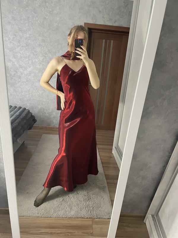 Вечірня довга сукня комбінація максі жіноча в білизняному стилі на тонких бретелях з шаллю...