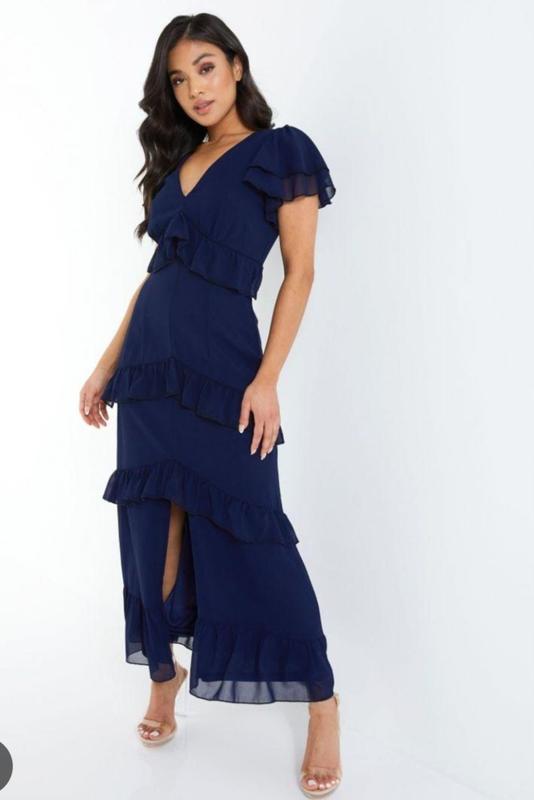 Очень красивое шифоновое платье макси Quiz с воланами, вечернее платье, р. 38. Новая, с биркой. Красивый насыщенный синий цвет. Верх шифон, снизу - трикотажная подкладка. Красивое декольте, двойной рукавчик воланами. Спереди разрез. Очень красивое женственное праздничное платье. Может подойти на выпускной. Отпрашиваю УП, Мост, Розетка безопасной оплатой или по оплате на карту - на Ваш выбор. Новой почтой - по оплате на карту. Есть много красивых вещей этого размера – смотрите мое объявления. Приглашаю подписаться на мою страницу - красивые вещи по приятным ценам, постоянное обновление и скидки.