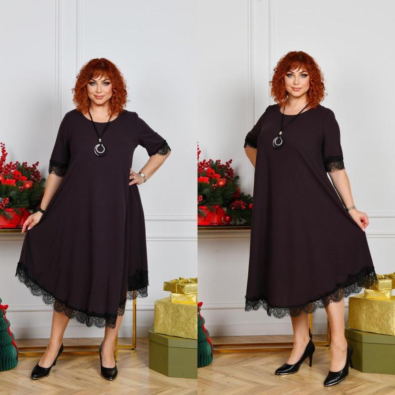 1650 грн Платье Код 3812 Ткань: креп-стретч (растяжимость средняя). Цвета: шоколад, зеленый, красный. Размеры: 48-50, 52-54, 56-58, 60-62, 64-66. Длина платья: 125, 126, 127, 128, 129 см. Длина рукава: 40, 41, 42, 43, 43 см. Обхват рукава: 38, 39, 40, 41, 42 см. Замеры готового изделия: 48-50 ОГ 104 ОТ 120 ОС 140 52-54 ОГ 112 ОТ 128 ОС 148 56-58 ОГ 120 ОТ 136 ОС 156 60-62 ОГ 128 ОТ 144 ОС 164 64-66 ОГ 136 ОТ 152 ОС 172 На модели показан этот размер 52-54❗️ Рост модели 170 см. Объемы модели: ОГ 108, ОТ 84, ОБ 108. Невероятно стильное платье в вечернем стиле, длиной меди, А-образного силуэта. Вырез горловины круглый. Рукав длиной чуть ниже локтя. Платье по рукавам и низу декорировано черным кружевом. Карман и застежек нет. отправка по полной оплате