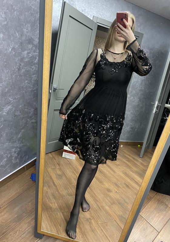 Бренд iconique Розмір по бірці L Сукня двійка під низ чорна сукня на бретельках Верх сітка вишита паєтками Одягнено на 94-70-94 зріст 170 см