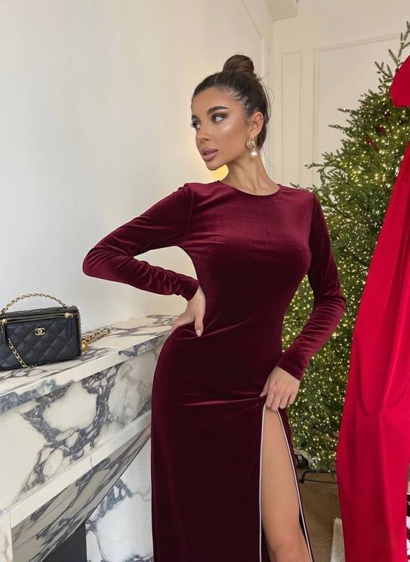 Елегантна приталена сукня з м’якого оксамиту, яка підкреслює фігуру та виглядає розкішно у...