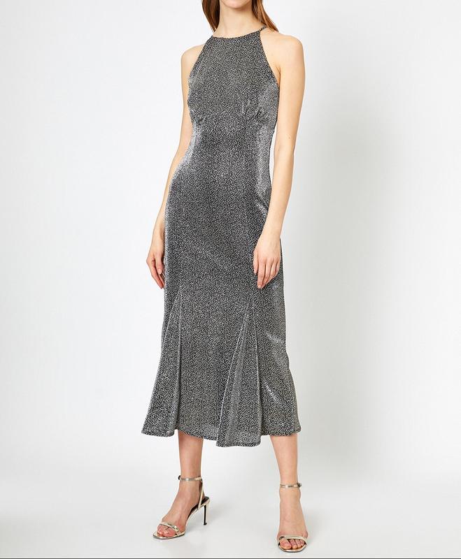 Размер: XS Украинский: 40 Европейский: 34 Обхват шеи: 33 Обхват груди: 82-86 Обхват талии: 64-68 Обхват стегон: 88-92 Размер: S Украинский: 42 Европейский: 36 Обхват шеи: 34 Обхват груди: 84-88 Обхват талии: 68-72 Обхват стегон: 92-96 Состав ткани: 85% полиэстер, 10% металлизированное волокно, 5% эластан / подкладка: 100% полиэстер.