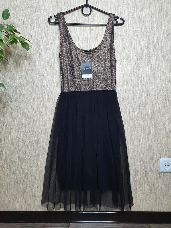 Повітряна, гарна сукня Topshop Розмір Eur 38 us6 uk 10 Верх з люриксовою ниткою Низ - спідниця олівець, а зверху шар фатину. Нове По бірочці 75 у.о. Склад спідниці 95% бавовна 5% еластан Верх топ 72% віскоза 16% люр нитка 12% поліестер Виміри Дл попереду від горловини 85 Дл від плеча 103 Дл від плеча до талії 38 для спідниці нижньої 53,5 для спідниці фатин 64 ПОГ 40