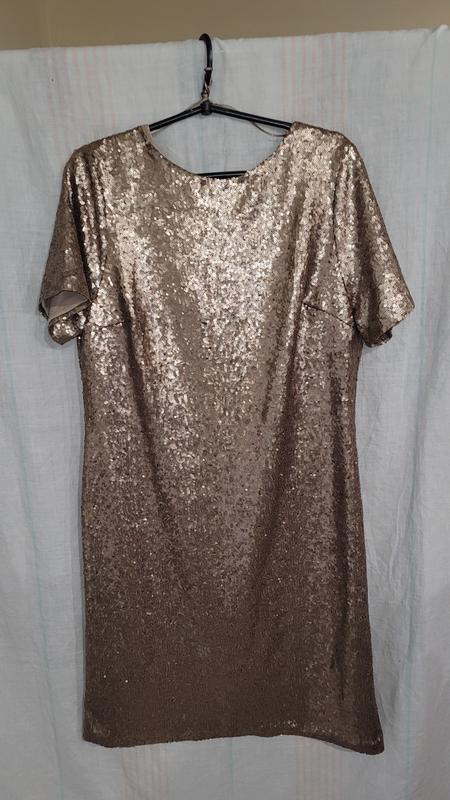 вечернее платье стрейч на трикотажной подкладке,на спине вырез с потайной молнией,все вышито бежевыми поетками, ог и об 106+,талия 100+, рукав23, длина 102.