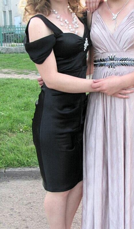 Класична атласна чорна сукня. вдягалась один раз, дефектiв не маэ. Розмiр S - M.