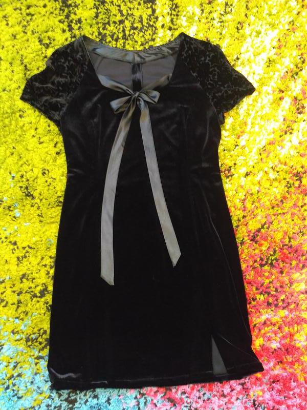 Гарна сукня зі стретч-велюру з короткими рукавами. Добре тягнеться. Шилася на замовлення. ПОГ 47 і до 54, ПОТ 40 і до 45, ПОБ 44 і до 55, довжина 87. Гарно сяде на розмір 46-48. Стрічки на вирізі атласні - можна зав'язати по різному. Красиво облягає фігуру. Торг можливий.