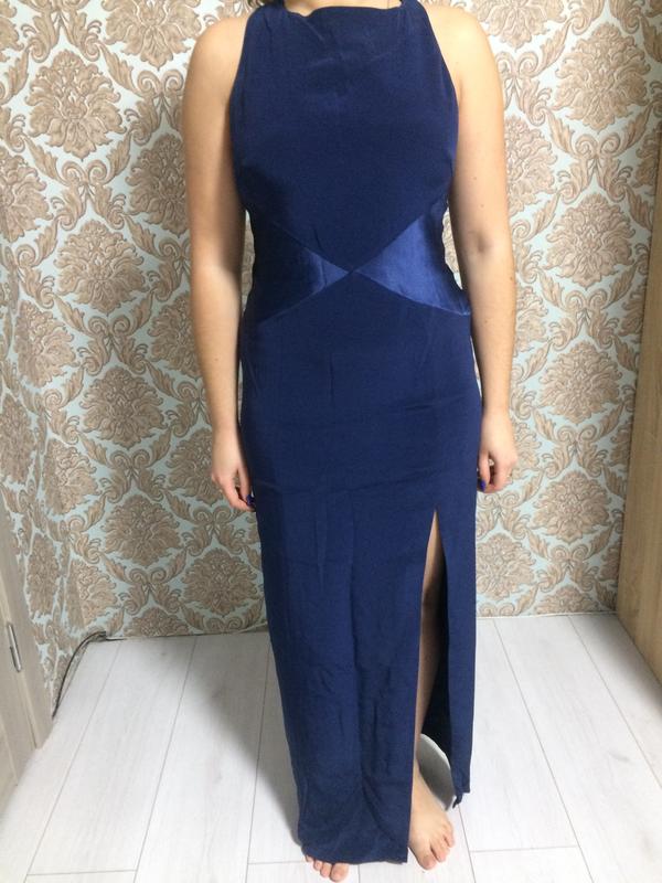 Ткань шелк, есть подклад, на спине есть замок. Тканина не тягнеться Груди 41 Талия 38 Бедра 48 Длина 150