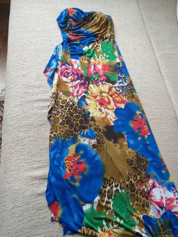 платье без дефектов пару раз одетое.ПОГ 40см тянеться и на больше.ткань тянеться бюст с чашечками.ПОТ 36см также можно и на больше .длина 135 одна сторона длинее вторая коротше. очень красивая розцветка.