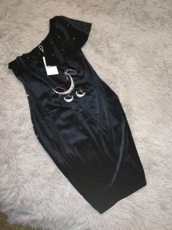 Новое велюровое платье с воланом на одно плече. Очень еффектно подчеркнёт фигуру.