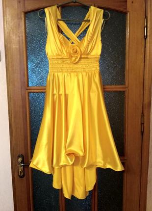 Нарядное платье , расклешенное. Сзади удлиненное. Размер 42 (S). Подойдет для выпускного вечера или любой другой праздник. Яркий желтый цвет.