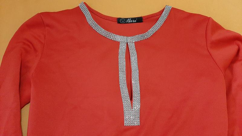 Очень красивое красное платье, отделанное камнями. Ткань - микродайвинг. Надевала 1 раз на корпоратив.