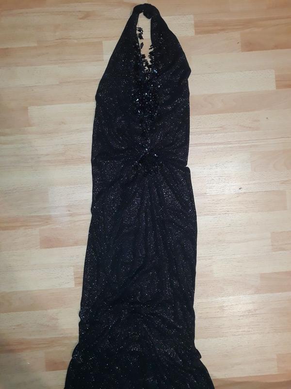 Платье вечернее! Подходит и на выпускной вечер! Идеально сидит по фигуре, ткань играет блестками. Спинка оголена до нижней точки пояса. Длинное.
