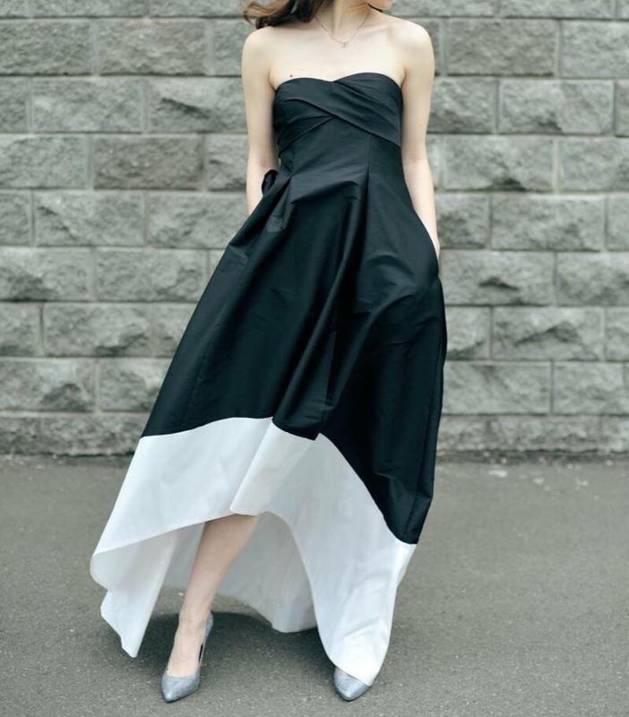 Платье на высокую {170 см + или каблук}девушку, одевалось один раз, после фирменная химчистка. Верх можно носить без бретелек, силиконовые полоски и корсетные вставки с уплотненным лифом позволяют.Внутренние карманы по бокам юбки, подкладка. Плотный шелк, держащий форму, волан белого, цвета молока. Покупалось в USA. замеры по запросу, торг