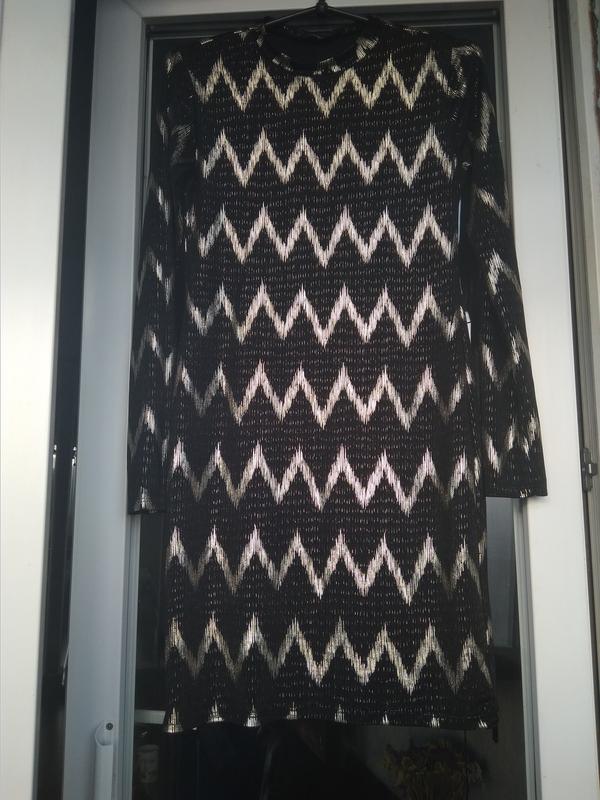 Новое! Очень красивое, нарядное платье В золотистый принт Воротник стойка Платье на вискозной подкладке, кроме рукавов Прямого кроя Стрейч