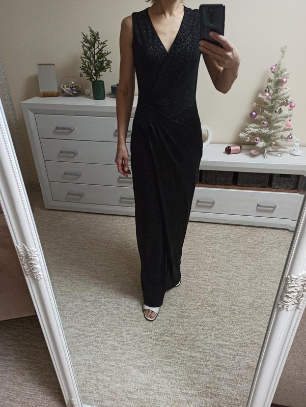 Шикарное вечернее платье в пол. Премиальная коллекция от дорогого бренда Damsel. Отлично подойдёт для любого мероприятия. Очень красиво смотрится при свете. Состояние новой вещи, с бумажной биркой. Цена на бирке~8000грн. Указан размер 12, но можно и 10 с меньшим облеганием по фигуре. Ткань - трикотаж. Подкладка ( второй слой) также трикотаж, полностью пришита к верхнему слою платья (кроме низа). Все замеры сделаны в нерастянутом спокойном состоянии - при необходимости отлично тянется по фигуре. 📌 Полуобхват груди - 44-46 см + очень хорошо тянется по фигуре, 📌 Полуобхват талии - 36 см + очень хорошо тянется по фигуре, 📌 Полуобхват бедер - 48 см + очень хорошо тянется по фигуре, 📌 Глубина выреза - 18-19 см, 📌 Длина платья - +-145 см ( может варьироваться в зависимости от степени натяжения по фигуре)) СОСТАВ: верхняя ткань :85% полиамид, 8% металлизированный полиэстер, 7% эластан. окантовка по горловины и проймам - 100% шелк. подкладка - 96% вискоза, 4% эластан. ВОЗВРАТ и ОБМЕН после получения на почте НЕ ПРЕДУСМОТРЕН