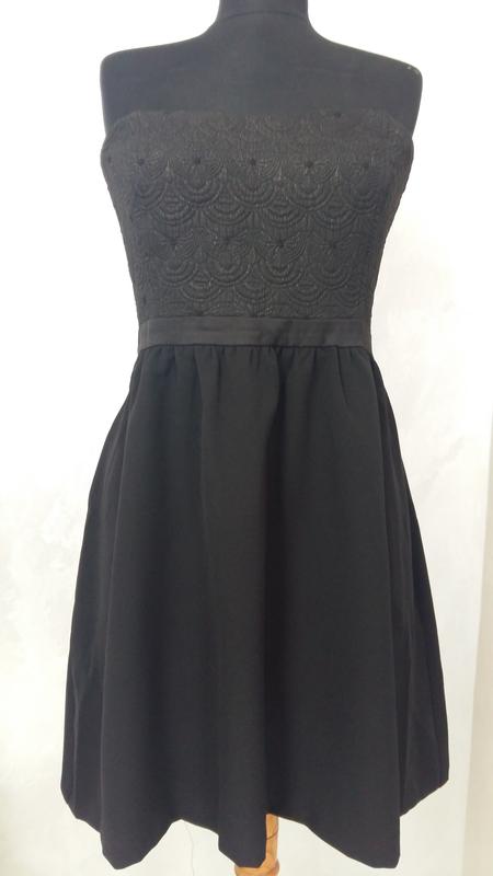 Коктельное платье "бюстье", бюст жакардовый, юбка на подкладе, застежка: молния, по верхнему краю лифа силиконовая лента для лучшей фиксации платья на бюсте, ПОг - 42 см, ПОт- 39 см, ПОб- 60 см, Шн - 73, Ди - 68 см, Д изделия от л. талии - 47 см
