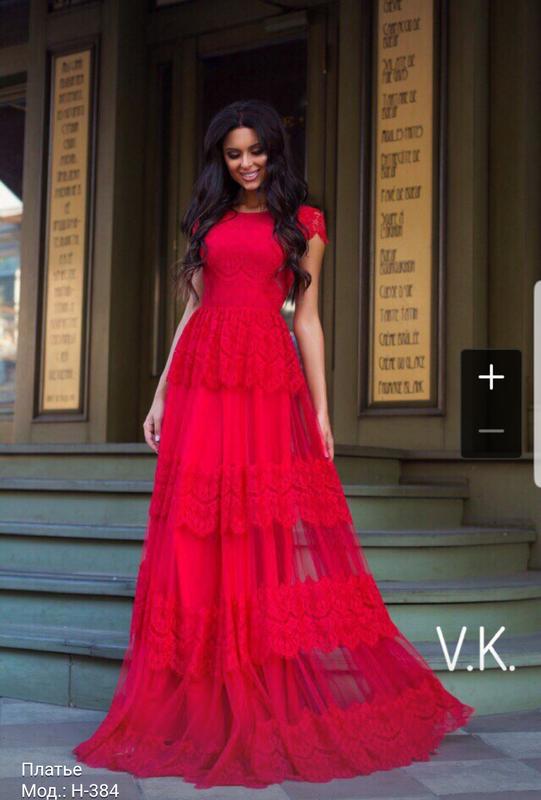 Вечернее дизайнерское красное кружевное платье в пол длинное миди с воланами