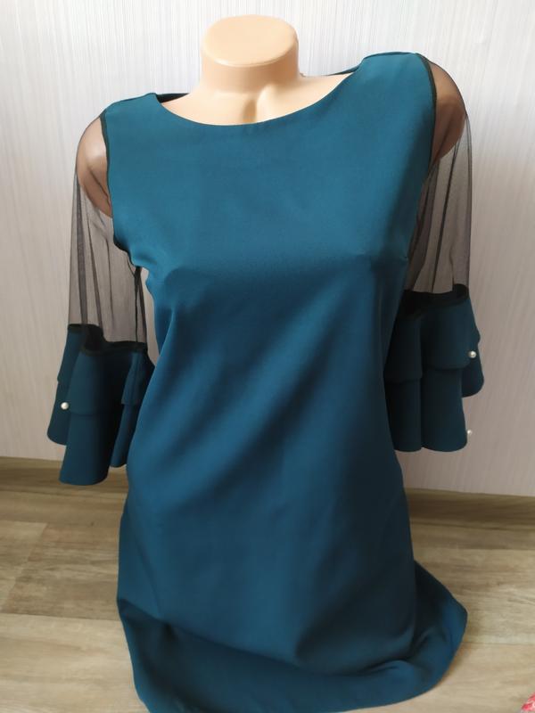 Сукня з воланами. Рукав в сеточку, з воланами на воланах жемчужинкі, на застібці.