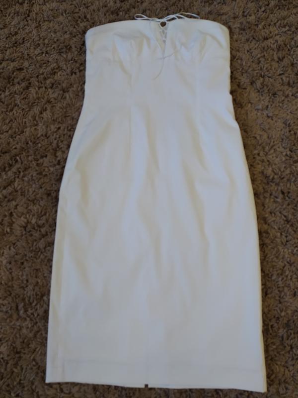 Эффектное платье бюстье, есть петельки для съёмных бретелек. Есть подкладка, силуэт приталенный. Размеры 36. Под грудью 37, объем груди 39, бедра 45, длина всего платья 86